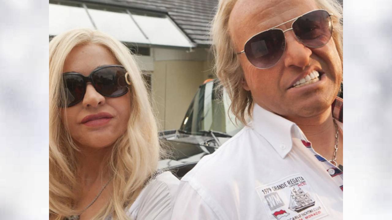 Auf den ersten Blick könnte man meinen, die Kamera habe tatsächlich Robert und Carmen Geiss erwischt: dicke Designer-Sonnenbrillen, blendend weiße Zähne und dieses unverwechselbare Jet-Set-Grinsen.
